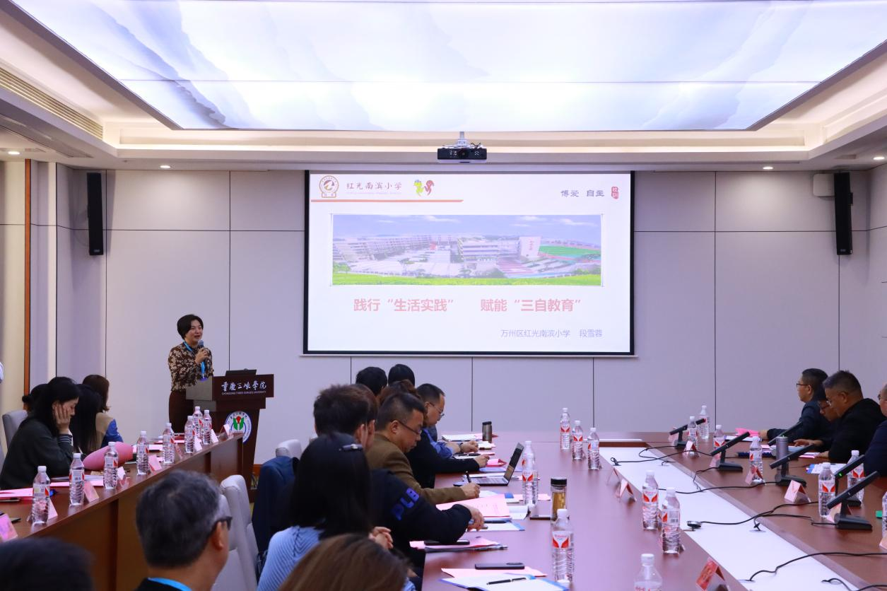 “生活·实践”教育共同体川渝中心秘书长王黎汇报了“生活·实践”教育共同体川渝中心工作情况。川渝中心高度整合川渝两地优质教育资源,深度开展“三个寻找”活动,并创办《“生活·实践”教育研究》国际期刊,为实验校发展提供了优质平台和资源。