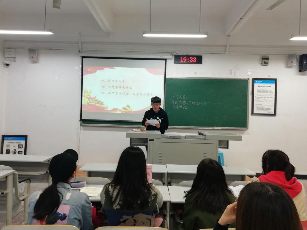 此次交流讨论会从三个问题展开讨论:“为什么入党” “入党条件是什么”“如何坚定信念,加强党性修养”。在交流会中,各成员分组讨论,围绕着读书篇目和自学的文章内容等,结合自身实际,依次派代表上台发表了各自的认识体会、感悟收获等。通过讨论在彼此的发言中寻找和别人相比的差距与不足,进一步加深了对马克思主义理论等的理解,使大家思想更加统一,更加坚定中国特色社会主义理论体系内容,牢记共产党人使命。其中,庞君毅同学讲道:“要立足实际,将读书所学、讨论所悟结合到各自的生活工作中去,进一步推动党的思想建设,更好地用党的理论去武装头脑指导实践。”
