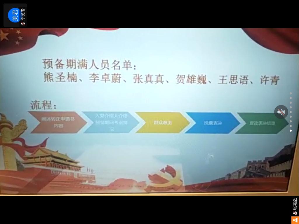 申搏sunbet第一党支部于2020年5月21日晚上七点通过线上召开了以讨论预备党员张真真等六位同志预备期满是否按期转正问题为主题的支部大会。第一党支部正式党员及预备党员按时参会。
