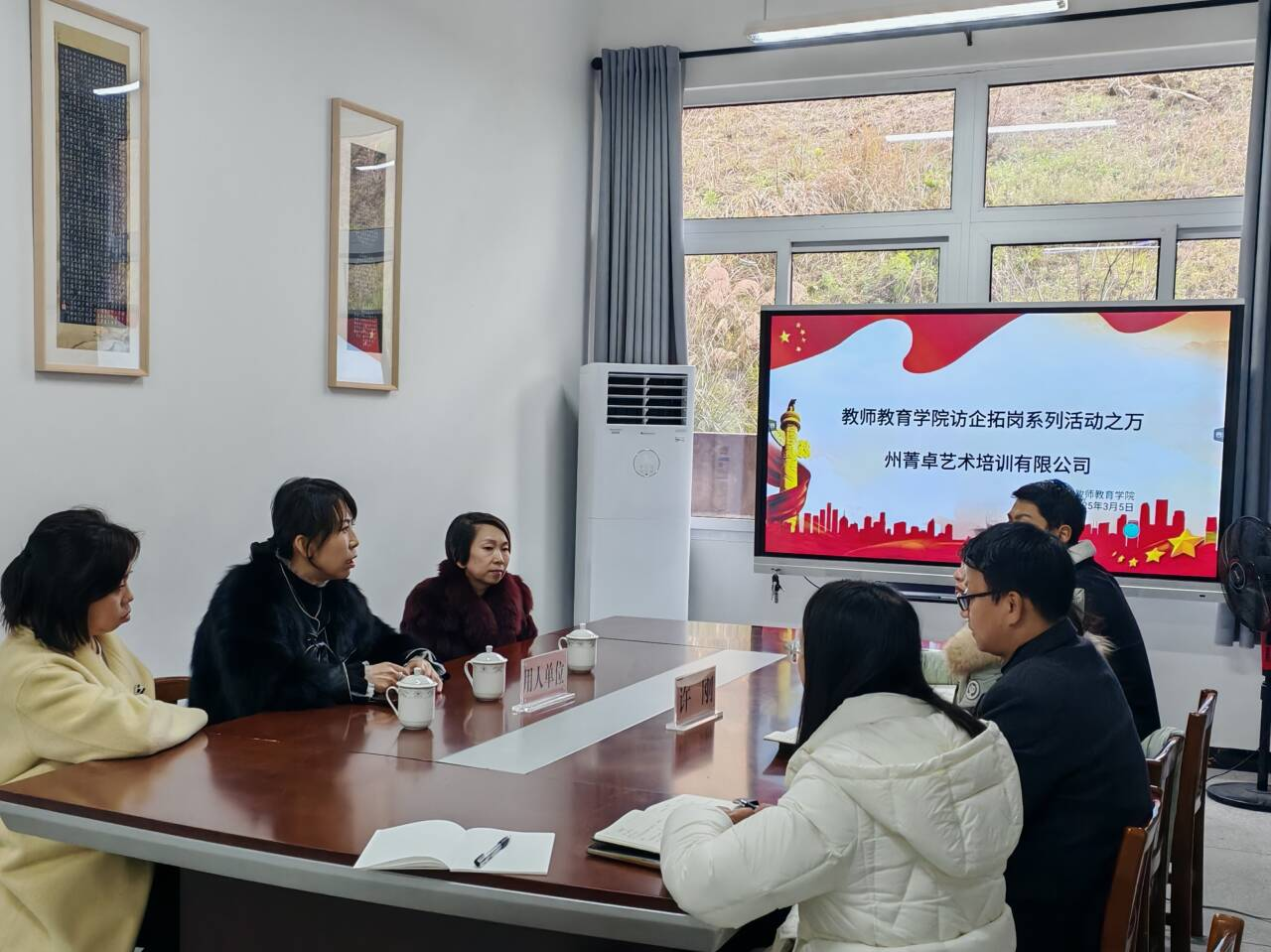菁卓艺术培训有限公司负责人率先介绍了关于我们,强调了当前用人需求的紧迫性,特别是在理科教师方面的巨大缺口。随后,研究生辅导员冯梅与2021级本科生辅导员周岭积极介入,主动对接,致力于为毕业生开拓就业途径。副书记副经理许刚详细阐述了公司员工的基本情况,表达了希望通过双方合作,不仅为应届毕业生提供宝贵的就业机会,也为低年级本科生搭建实践平台,助力他们提升师范技能、积累实战经验的愿景。会议尾声,双方达成共识,决定今后将携手推广精英教育理念,并计划为低年级本科生举办兼职专题研讨会,以进一步促进学以致用。