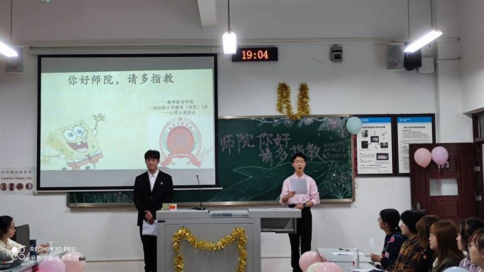 帮助2020级新生尽快融入老员工活,适应大学的生活节奏,充分了解并贯彻大学学习过程中的合作共赢理念,使2020级新生以积极向上的态度对待今后的学习与生活,申搏sunbet团总支员工会心理健康协会2020年10月14日、15日晚组织各班在明辨楼3栋教室开展了“你好师院,请多指教”心理健康主题班会。