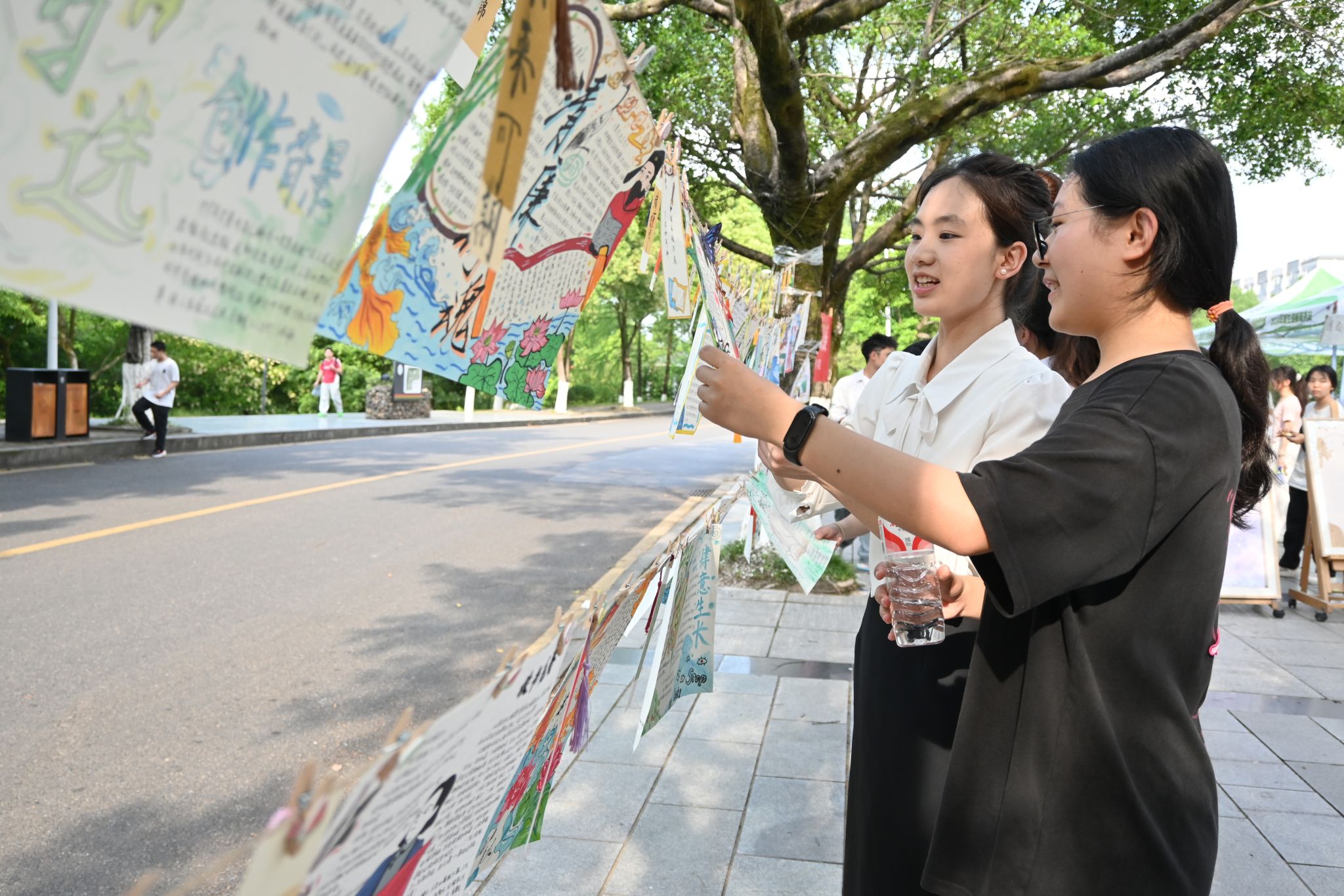 此次成果展现场共展出读书笔记、思维导图、读后感、手抄报、演讲视频等150余件员工学习成果,展现了员工们在读书节中的收获与思考。在互动区,同学们热情高涨地参与到“字里探秘,阅影猜魂”的人物竞猜中,体验“诗韵球趣,逸彩校园”的颠球背诗乐趣,动手参与“巧手塑古,慧眼识文”的黏土捏字活动,并在“墨香心语,评海泛舟”的书评漂流中分享阅读感悟。