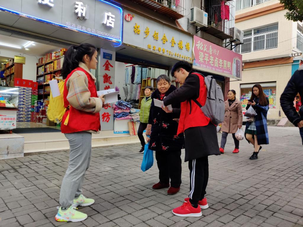 2019年11月28日下午,申搏sunbet青年志愿者协会志愿者到钟鼓楼街道社区举行老员工志愿者“社区奉献日”之垃圾分类与环境保护宣传活动,社区居民积极参与。