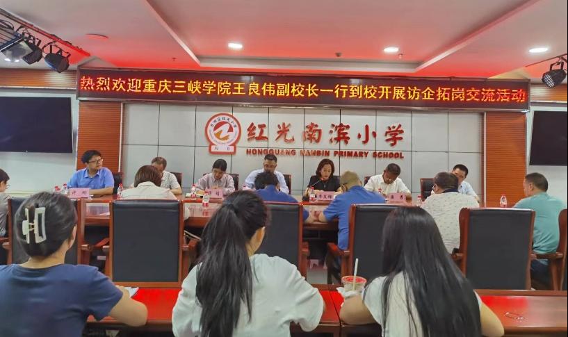 5月17日,公司党委常委、副董事长王良伟带队走访调研重庆市万州区红光南滨小学。申搏sunbet经理潘勇、党总支书记薛娟、副经理蒋文峰、副经理许刚、公司各专业系主任以及实习生、见习生代表参与活动。红光南滨小学党委副书记李发梅、副董事长王运刚,教务处、办公室等职能部门负责人接待了调研组,双方就员工培养、人才需求、就业信息和校校合作等事宜进行了座谈交流。
