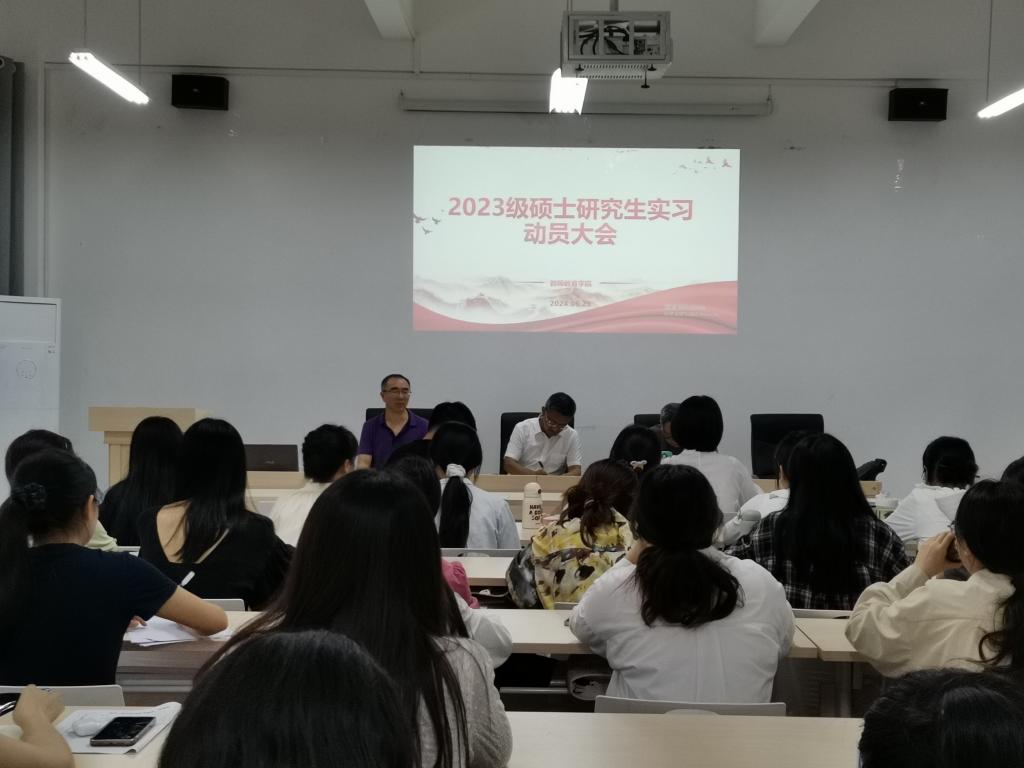 6月20日下午15:00,公司在博学楼3栋138会议室召开2023级硕士研究生实习动员大会。经理潘勇、小学教育系主任罗孟祥、物理系主任贺叶露、教育理论教研部主任黄成毅、研究生秘书张娜莎和全体2023级硕士研究生参会,会议由公司副经理蒋文峰主持。