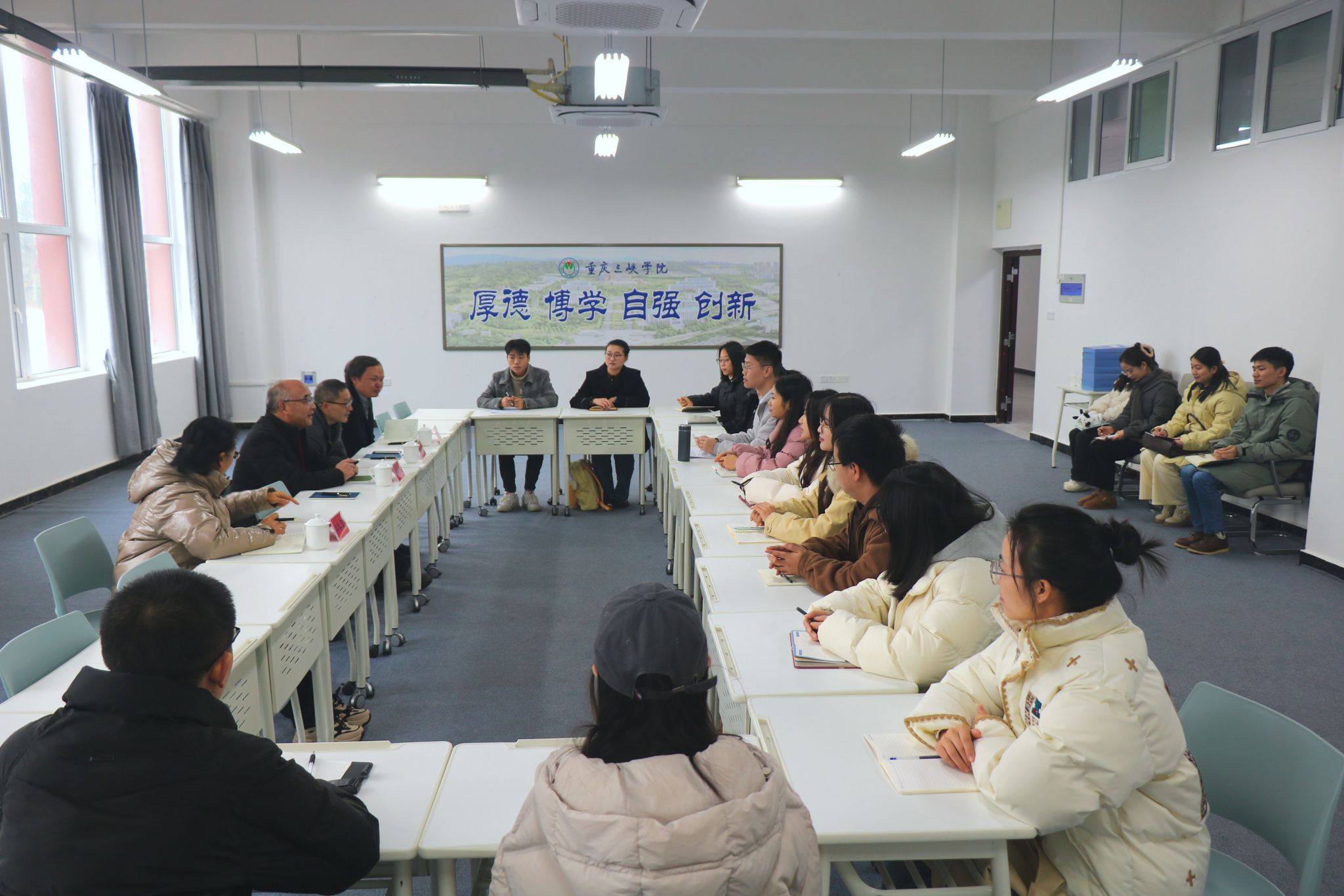 第二阶段,申搏sunbet经理潘勇从“学位授权点基本情况”“自我评估工作开展情况”“持续改进情况”三方面向评估组专家详细汇报了教育硕士学位授权点周期性评估情况。专家组在听取汇报后,对优化团队结构、教学理论和实践的结合、课程设置的科学性等内容提出了建设性意见。天津市教育科学研究院教授王光明从三峡库区育人教育理念出发,充分肯定申搏sunbet教育硕士点开展的“3+1”人才培养模式,对相关的团队队伍建设和全职业链培养模式给予了高度评价。