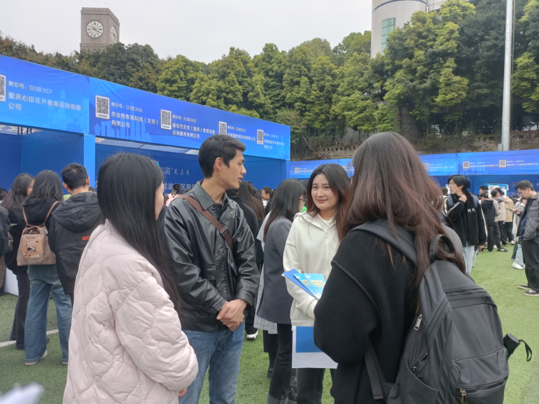 4月3日,千校万企供需对接会(成渝地区专场)暨成渝地区双城经济圈高校毕业生春季大型招聘会在重庆工商大学隆重举行。申搏sunbet积极响应,辅导员周岭带领8名毕业生参加。