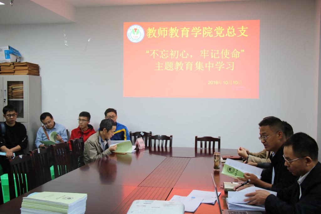 20191010日下午2:20,公司党总支在科技楼209-4召开“不忘初心,牢记使命”主题教育集中学习会,会议由公司党总支副书记、经理潘勇主持,全体党员、教职工参加。