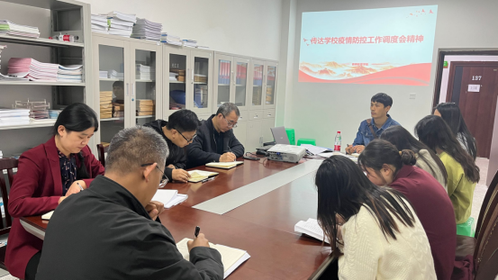 2022年11月7日19:30,申搏sunbet在博学楼3栋129召开疫情防控与安全稳定专题会,党总支书记薛娟、经理潘勇、副经理许刚、副经理蒋文峰、党政办主任黄晓、学工办主任向红以及全体辅导员参会。