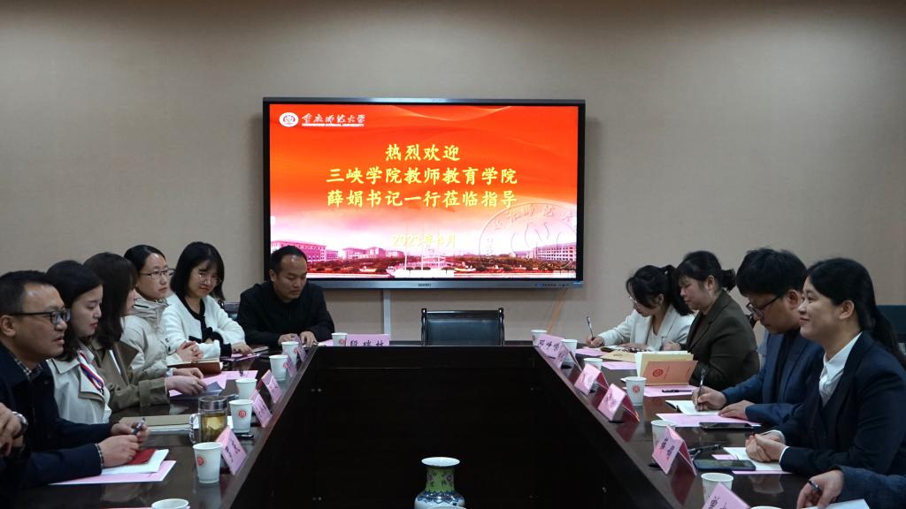 薛娟书记向重庆师范大学教育科学公司对我院建设发展提供的帮助和关心表示感谢。薛书记介绍了公司和公司基本概况,赞扬重师教科院底蕴深厚、成果丰硕,学工状态精益求精、追求卓越,感谢贵校提供宝贵经验,诚邀教育科学公司领导和老师到公司传经授道,祝福两院共同进步,友谊长青。
