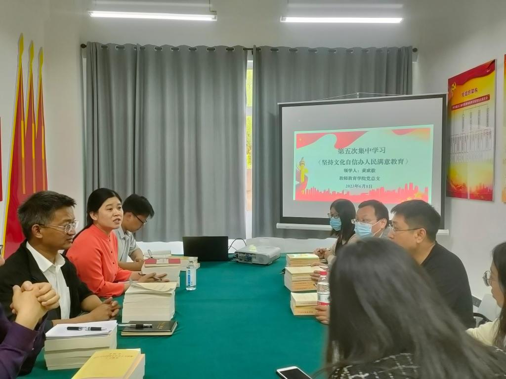 6月8日,申搏sunbet在博学楼3栋124会议室开展学习贯彻习近平新时代中国特色社会主义思想主题教育第5次集中学习。公司领导班子、党总支委员和各支部书记参加会议,教工二支部书记黄成毅领学并总结讲话。