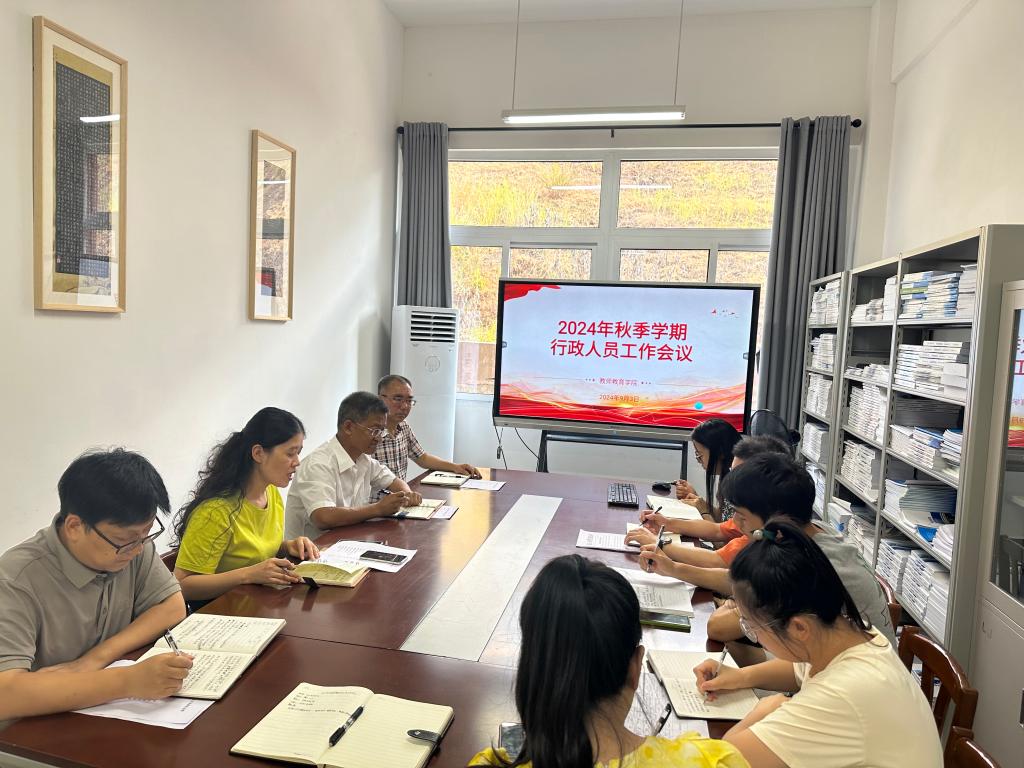 9月3日下午,申搏sunbet在博学楼3栋129召开行政工作会议,公司领导班子、行政人员和全体学工人员参加会议,会议由副经理许刚主持。