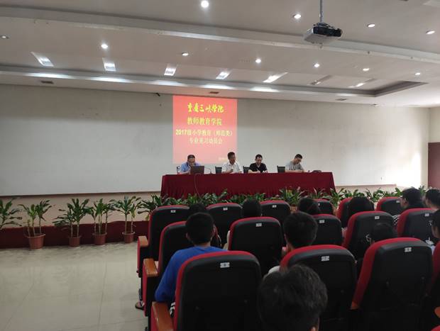 2019年6月25日下午,申搏sunbet于明辨楼2栋104会议室举行了2017级小学教育(师范)专业见习动员大会。申搏sunbet经理潘勇、副书记李中春,教研室主任罗孟祥、2017级辅导员张京友参加会议。