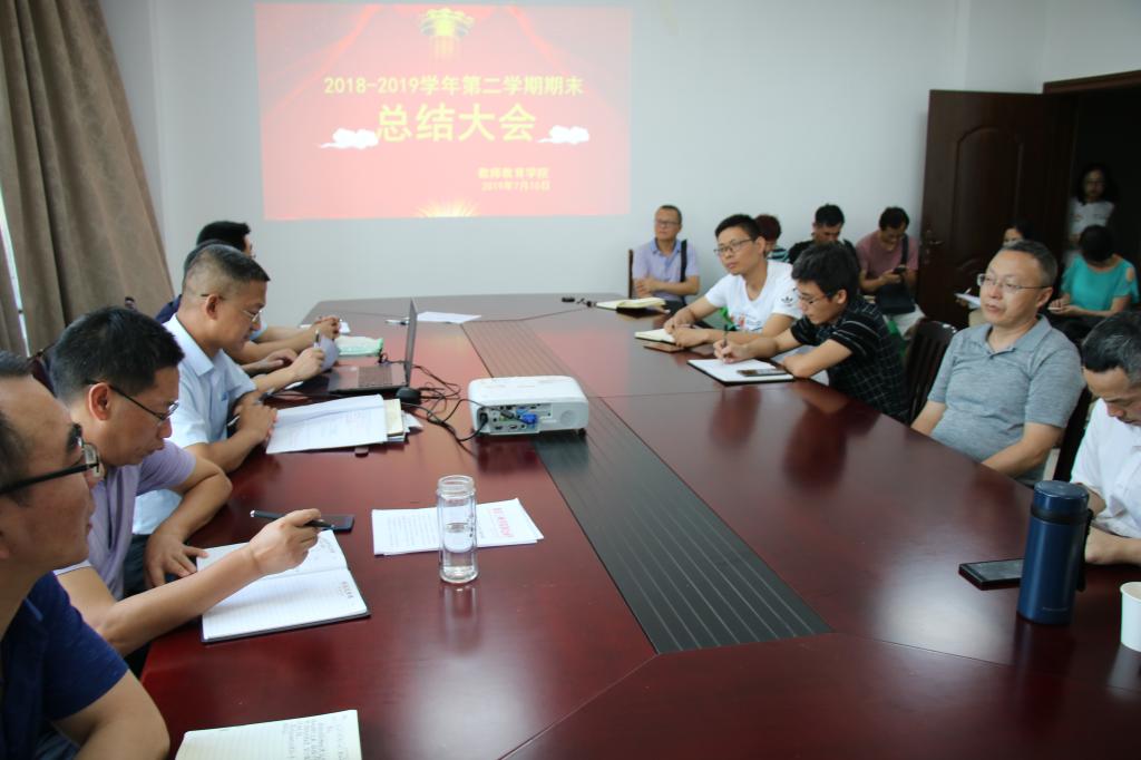 2019年7月10日下午2:20,公司在科技楼209-4举行了2018-2019学年第二学期期末总结大会,会议由潘勇经理主持,全体教职工参加。
