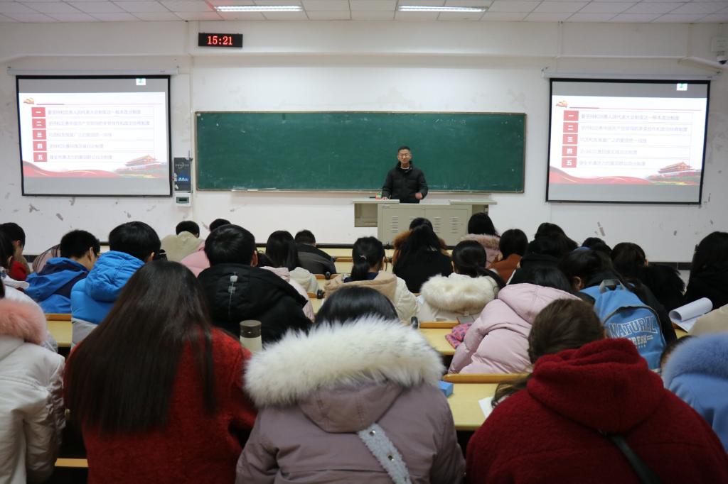 2019年12月31日下午2:30,公司于明辨楼2栋207举行了以《坚定制度自信,凝聚发展力量,创新教师教育——谈学习和贯彻党的十九届四中全会精神》为题的宣讲会。宣讲人为公司经理潘勇,2018级生物科学(师范类)、化学(师范类)、物理学(师范类)全体同学聆听了本次讲座。