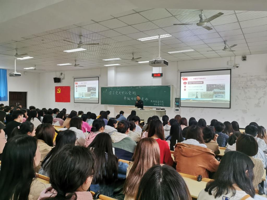 4月16日,申搏sunbet经理潘勇在明辨楼2栋206为2020级教育硕士研究生和2019级小学教育专业本科生做了《学习党史、牢记党纲、做“四有”好老师》的党史学习教育专宣讲会,200多名师范生参加了这次宣讲。