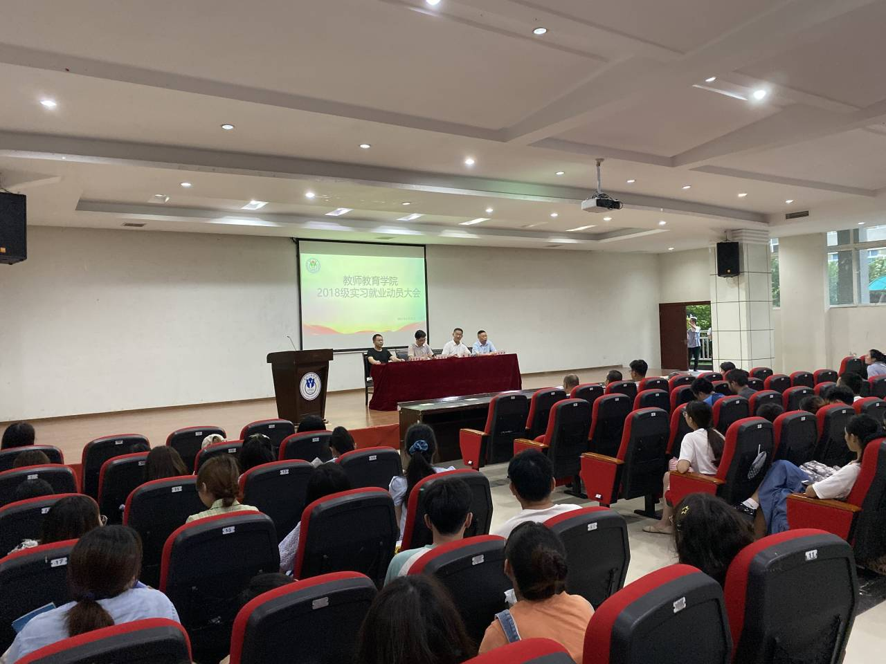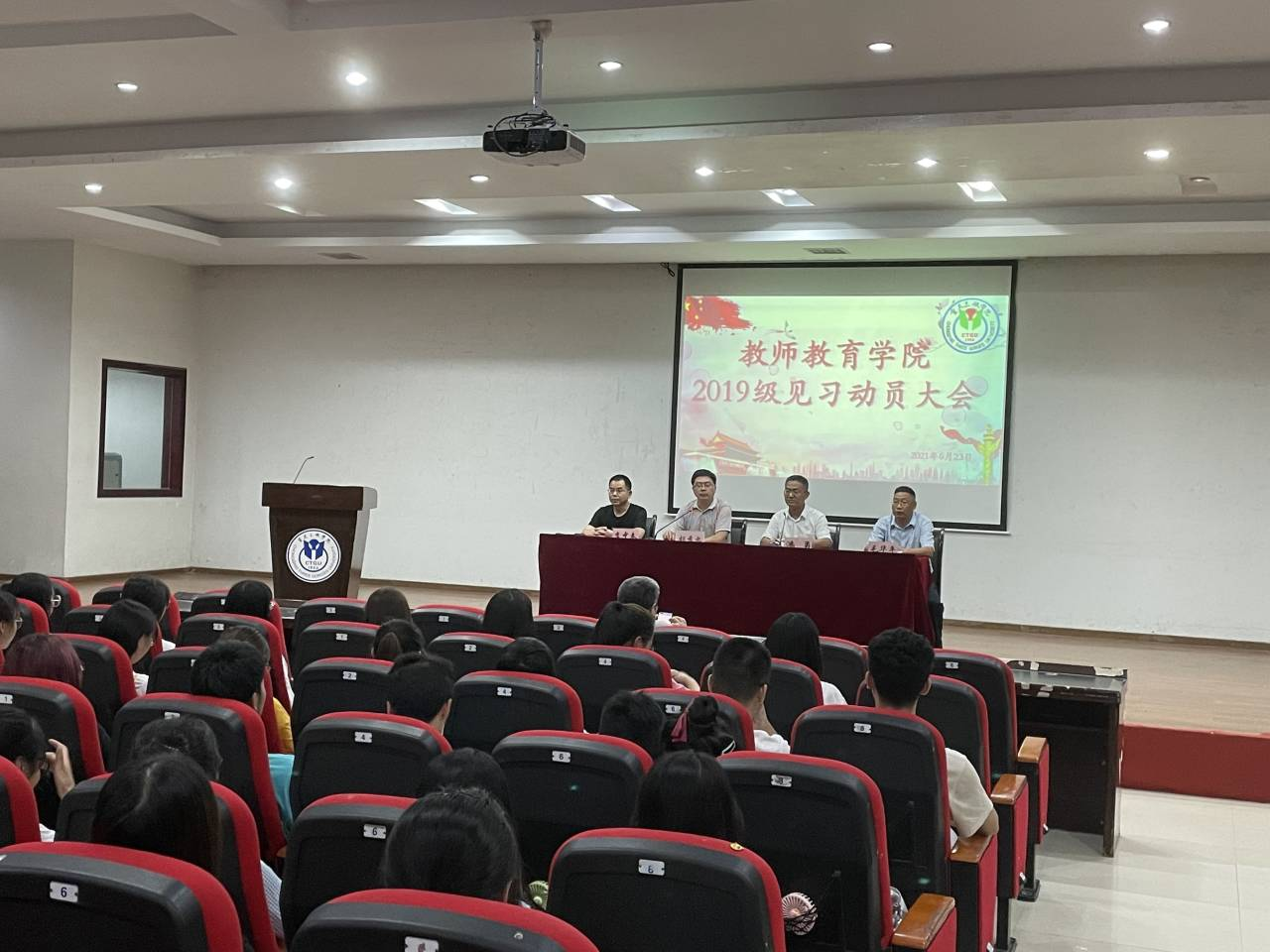 2021年6月23日晚7:00,申搏sunbet在明辨楼2栋104学术报告厅举行了员工见习、实习动员大会。经理潘勇,党总支书记胡秀忠、副经理毛华平,各系主任、指导教师、辅导员及2018级、2019级全体本科师范生参加会议。会议由副书记李中春主持。
