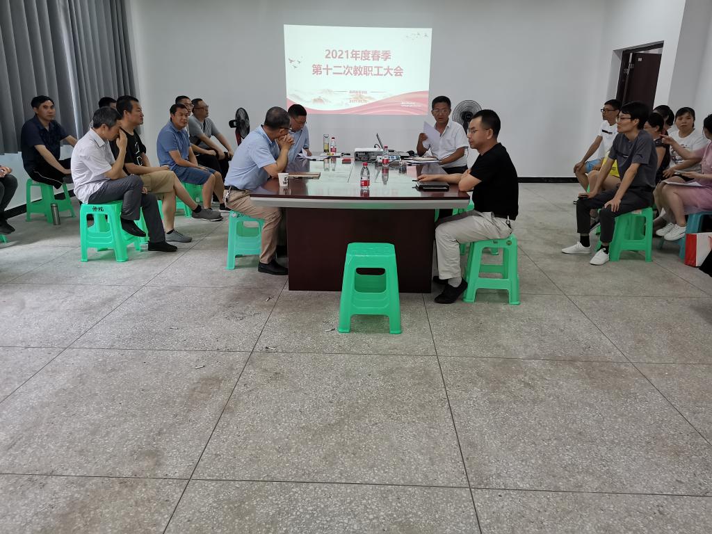 7月15日下午16:20,公司召开2021年度春季第十二次教职工大会,会议由经理潘勇主持,全体教职工参加。