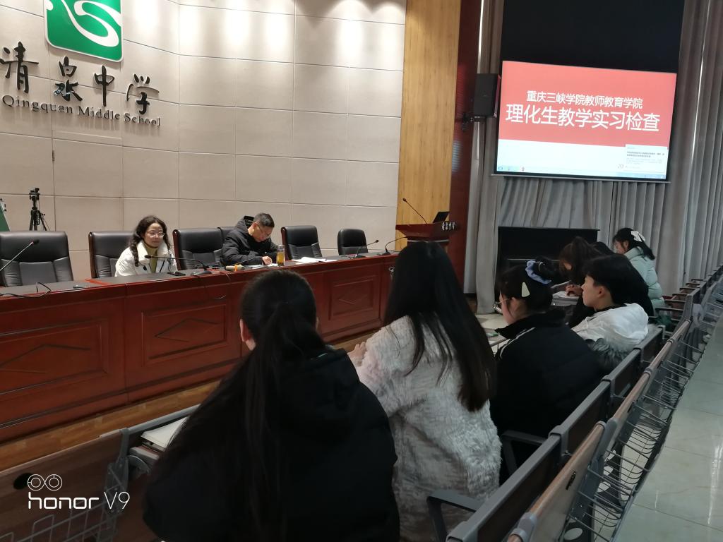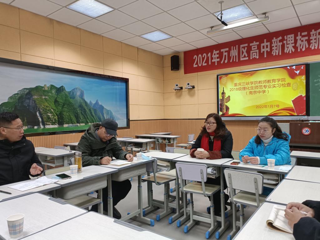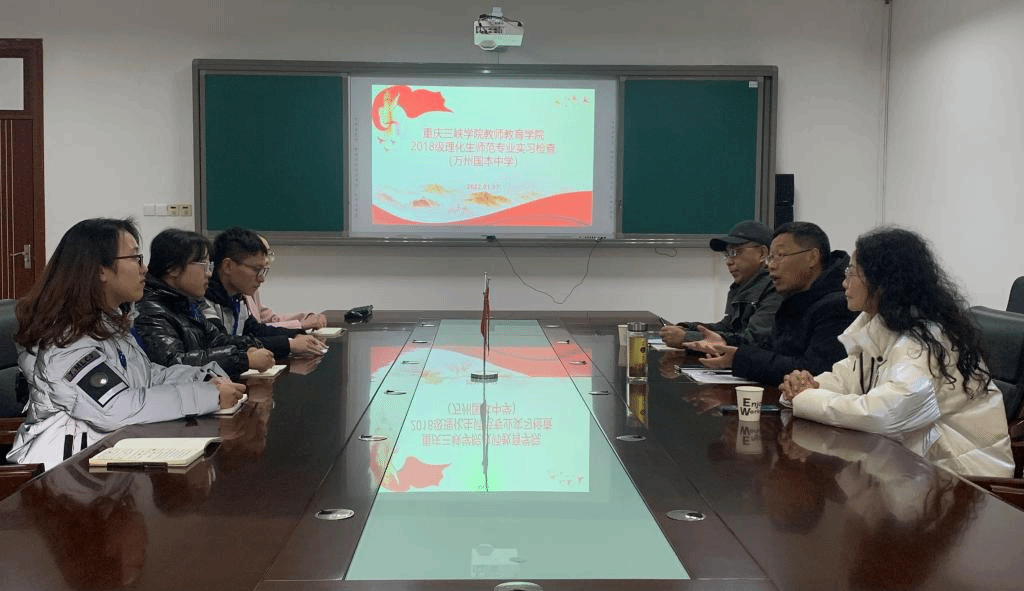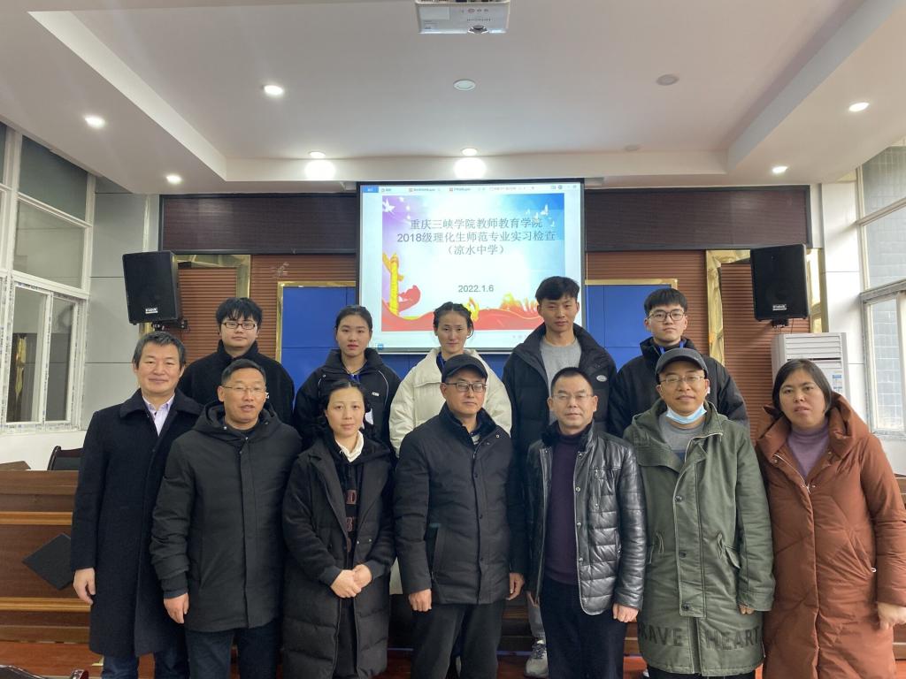 2022年1月6-7日,为进一步加强对实习生的管理,切实提高师范生毕业实习质量,根据公司实习工作安排,申搏sunbet副经理毛华平、副书记李中春、生物系主任杨俊年、化学系负责人黄秀山、理学实验室主任刘利利、物理系教师刘定兴和辅导员鞠小勤到万州区新田中学、南京中学、清泉中学、国本中学、鱼泉中学、凉水初级中学、太安初级中学对2018级理化生师范专业实习生进行了实习检查并召开了实习座谈会。
