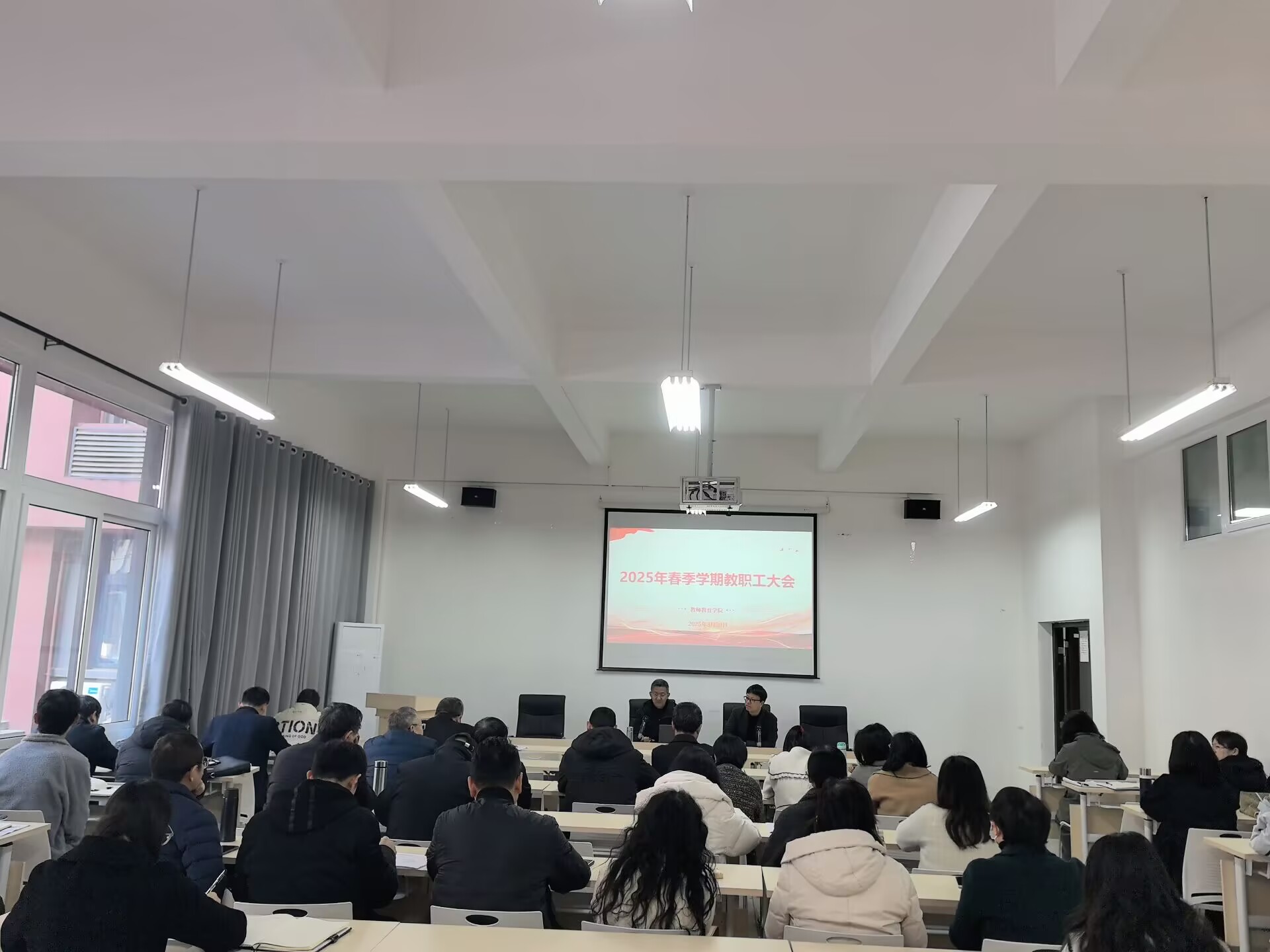 2025 3 20 日,申搏sunbet在博学楼1138会议室举行政治理论学习和教职工大会。党总支副书记、副经理许刚主持会议,全体教职工参加。
