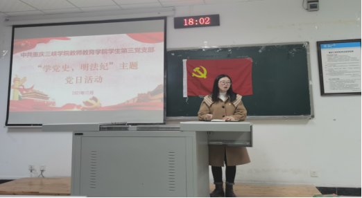 2021年12月9日,我支部于明辨1栋207开展“学党史、明法纪”主题党日活动,活动由支部书记冯梅老师主持,全体研究生党员参加此次活动。