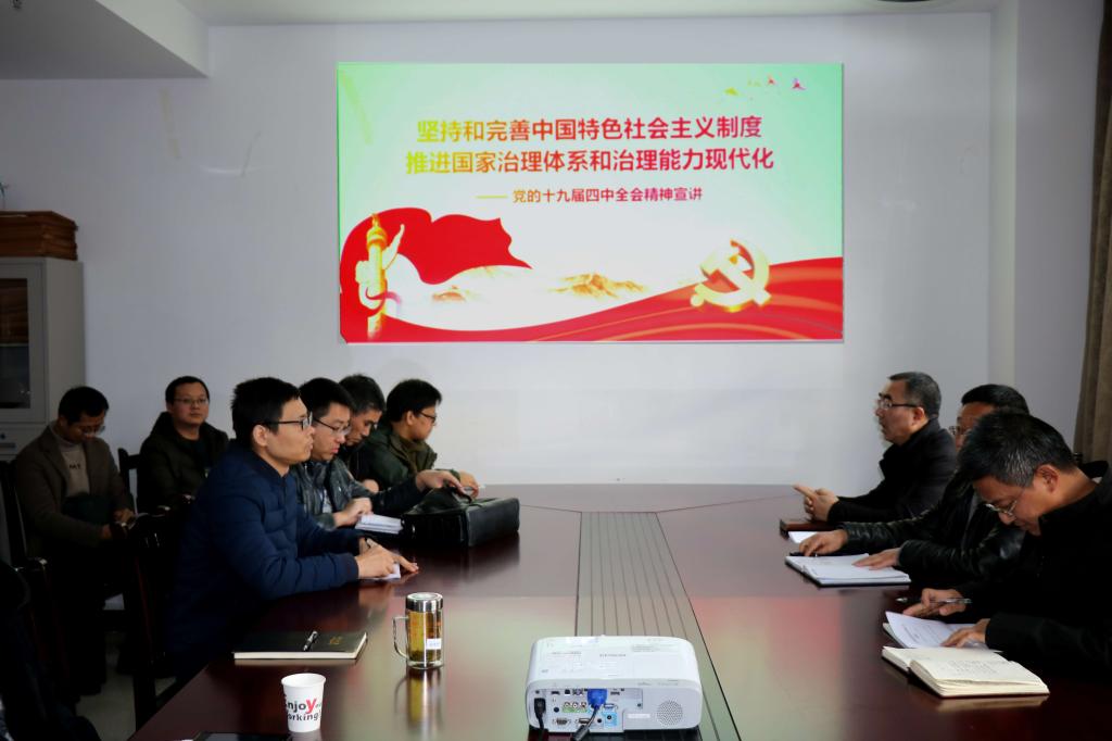 公司党总支副书记李中春向大家宣讲了党的十九届四中全会精神——《坚持和完善中国特色社会主义制度 推进国家治理体系和治理能力现代化》;副经理蒋文峰通报了2019年公司的科研工作,对公司今年的科研工作给予肯定,并鼓励大家积极做科研,争取明年科研工作更进一步。副经理毛华平对期末教学工作进行部署,希望教师提高教育认识,强调期末考试及教学检查等注意事项,并提出做好下学期备课工作。