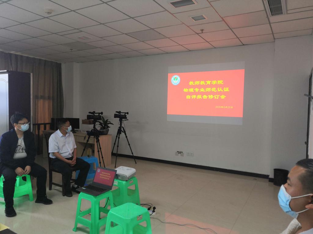 2020520上午10申搏sunbet物理学(师范类)师范认证工作小组在科技楼204办公室举行了申搏sunbet物理师范专业认证自评报告修订会。经理潘勇、教学副经理毛华平、物理系相关教师出席了会议。
