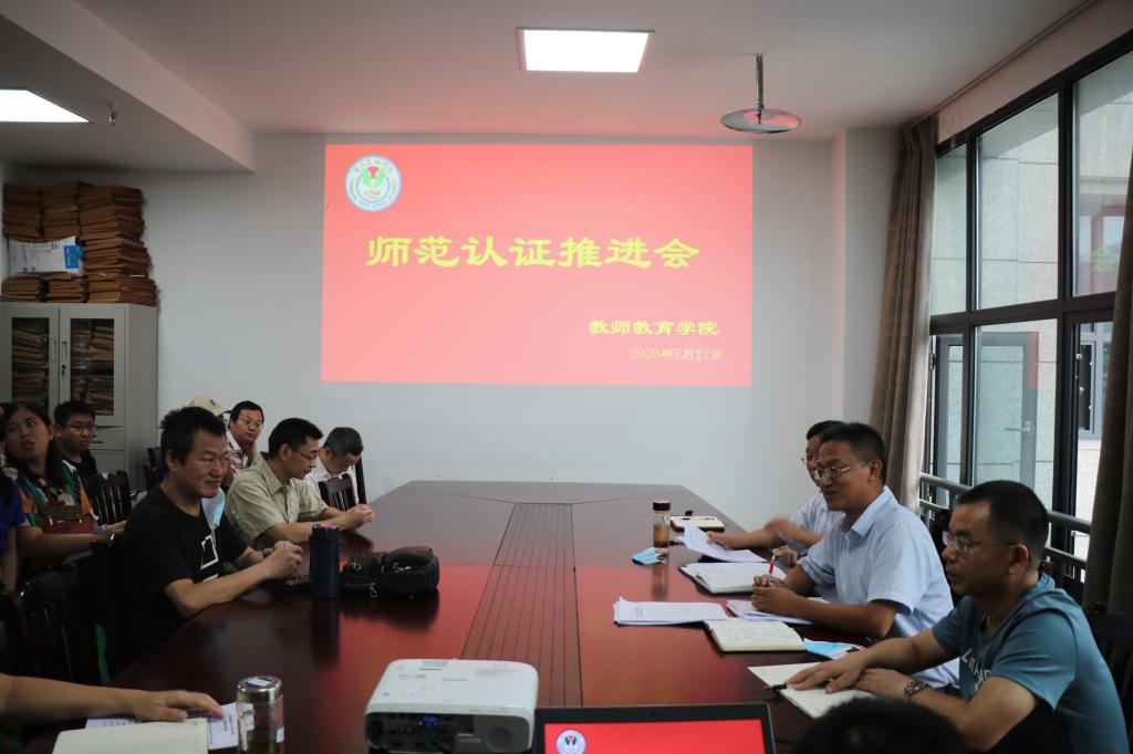 7月11日上午,申搏sunbet在科技楼209-4召开物理专业师范认证推进会,经理潘勇、副经理毛华平、蒋文峰,党总支副书记李中春,物理学科专业教师及相关教职工参加,会议由经理潘勇主持。